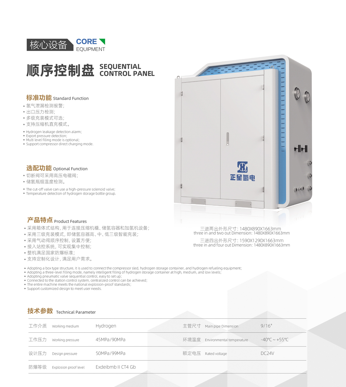 多级充装模式可选,提高储气系统效率 ;支持压缩机直充模式;可接入站控系统集中控制;电气零部件满足国家防爆标准,整机通过防爆认证。